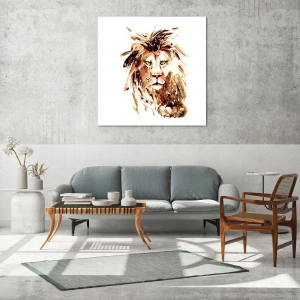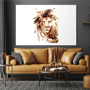 - Un ritratto artistico ad acquerello di un leone su sfondo bianco. Questo motivo simboleggia forza, ferocia ed eleganza, perfetto sia per interni moderni che classici.