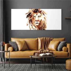 Quadro su vetro - Ritratto ad acquerello di un leone su sfondo bianco - 70x50cm - Forza e dignità - Decorazione murale moderna per soggiorno e camera da letto ARTTOR