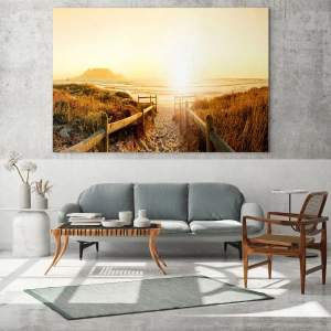 - Questo dipinto raffigura un sentiero attraverso una duna che conduce a una spiaggia al tramonto. Una scelta perfetta per interni ispirati alla natura e alla tranquillità.