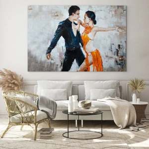 Quadro su vetro - Una coppia che balla in una posa dinamica su uno sfondo in stile impressionista - 70x50cm - Dirty dancing - Decorazione murale moderna per soggiorno e camera da letto ARTTOR
