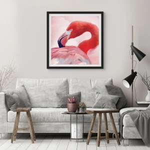 Poster in cornice nera - Fenicottero rosa su sfondo chiaro - 50x70cm - Bellezza alata - Decorazione murale moderna per soggiorno e camera da letto ARTTOR