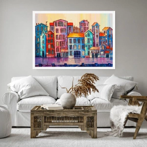Poster - Case popolari colorate in riva all'acqua in stile artistico - 100x70cm - Una città da favola - Decorazione murale moderna per soggiorno e camera da letto ARTTOR