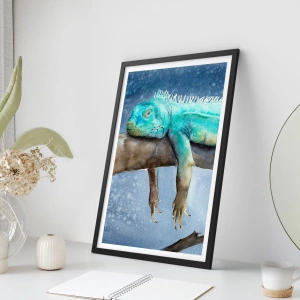 Poster in cornice nera - Iguana blu che riposa su un ramo - 70x50cm - Va tutto bene! - Decorazione murale moderna per soggiorno e camera da letto ARTTOR