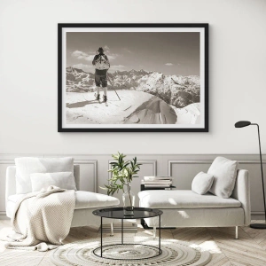 "E le montagne sono uguali" è uno straordinario poster in stile retrò che raffigura uno sciatore con maestose montagne innevate sullo sfondo. I delicati colori bianco e nero e l'atmosfera storica dell'immagine conferiscono eleganza e stile vintage a qualsiasi interno. Dettagli come la tuta da sci e i bastoncini tradizionali evocano i vecchi tempi degli sport invernali.