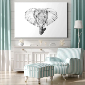 Quadro su tela - Stampe su Tela - Disegno in bianco e nero della testa di un elefante su sfondo bianco - 50x70cm - C'era un volta un elefante - Decorazione murale moderna per soggiorno e camera da letto ARTTOR