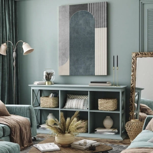 L'elegante composizione si distingue per la semplicità delle forme, rendendola perfetta per un soggiorno, una camera da letto o un ufficio. Il motivo geometrico enfatizza armonia ed equilibrio, portando pace e raffinatezza nella stanza.