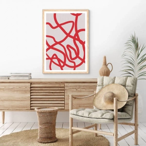Poster in cornice rovere chiaro - Rosso su bianco - 70x100 cm