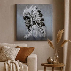 La composizione del ritratto, con il capo indiano su uno sfondo di colori tenui, enfatizza la forza, la saggezza e il carattere spirituale di questa figura. Ogni elemento, dal copricapo di piume ai tratti del viso, è stato realizzato con precisione, conferendo all'immagine un'espressione realistica ma artistica.