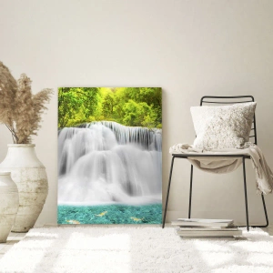 Quadro su vetro - Cascata spumeggiante dal verde all'azzurro - 30x30 cm