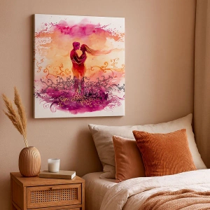 Quadro su tela - Stampe su Tela - Una coppia abbracciata su uno sfondo astratto rosa e arancione - 100x70cm - Un unico cuore! Mi basta così poco... - Decorazione murale moderna per soggiorno e camera da letto ARTTOR