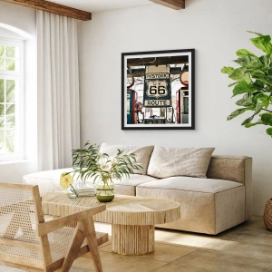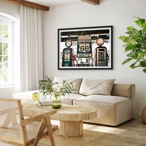 Poster in cornice nera - Stazione di servizio storica della Route 66 - 70x50cm - Viaggio retro americano - Decorazione murale moderna per soggiorno e camera da letto ARTTOR
