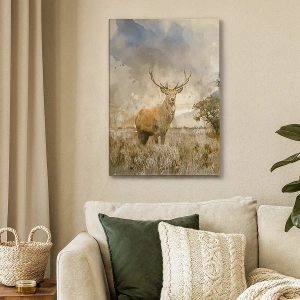 Quadro su tela - Stampe su Tela - Un cervo in un ambiente naturale in stile acquerello - 70x50cm - Dignità - forza - maestosità - Decorazione murale moderna per soggiorno e camera da letto ARTTOR