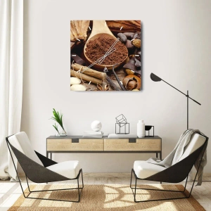 Orologio da parete - Orologio in Vetro - Un cucchiaio di cacao circondato da spezie e pezzi di cioccolato - 30x30cm - Ideale per i momenti di tristezza - Decorazione murale moderna per soggiorno, cucina e camera da letto ARTTOR