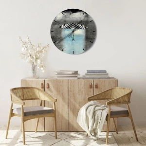 Arricchisci i tuoi interni con un tocco artistico con questo orologio. Un ombrello a quadri bianchi e neri su uno sfondo di nuvole cariche di pioggia e un cielo azzurro è una decorazione che darà alla tua casa uno stile unico.