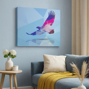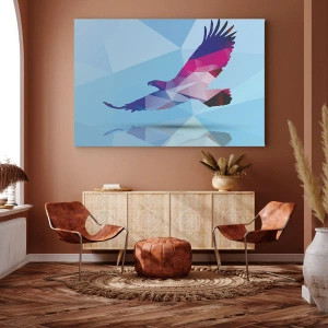 Quadro su tela - Stampe su Tela - Silhouette geometrica di un'aquila in volo su sfondo blu - 50x70cm - L'aquila nel cristallo lilla - Decorazione murale moderna per soggiorno e camera da letto ARTTOR