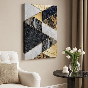 Quadro su tela - Stampe su Tela - Triangoli geometrici in oro, marmo e tonalità scure - 140x50cm - Pietra su pietra - Decorazione murale moderna per soggiorno e camera da letto ARTTOR