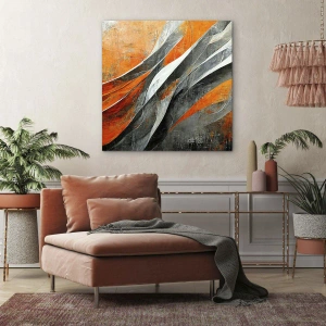 Quadro su tela - Stampe su Tela - Linee astratte nei toni dell'arancione e del grigio - 50x70cm - Caldo e freddo - Decorazione murale moderna per soggiorno e camera da letto ARTTOR