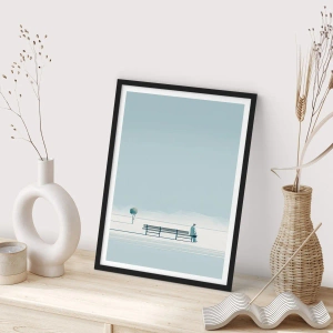 Poster in cornice nera - Una persona seduta su una panchina in un paesaggio minimalista - 70x50cm - Si, aspetto. - Decorazione murale moderna per soggiorno e camera da letto ARTTOR