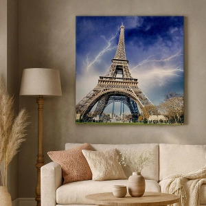 Il motivo della Torre Eiffel in un'ambientazione tempestosa richiama l'atmosfera unica di Parigi, combinando l'eleganza con il dinamismo e la potenza della natura. È un'immagine che ispira azione e riflessione sull'armonia tra la creazione umana e le forze della natura.