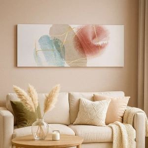 Arte murale - Perle di spazio - Forme astratte con colori delicati e linee dorate