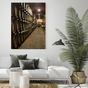- Il dipinto raffigura una suggestiva cantina con file di botti, catturando perfettamente l'atmosfera tradizionale e lo stile rustico. È un elemento unico per qualsiasi interno, donando calore ed espressività.