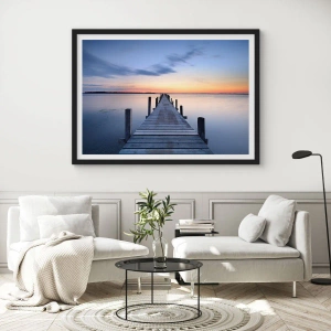 Poster in cornice nera - Molo sul lago al tramonto - 50x70cm - La calma di un dolce tramonto - Decorazione murale moderna per soggiorno e camera da letto ARTTOR