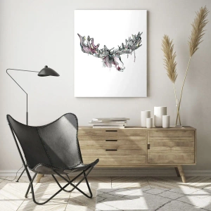 Quadro su vetro - Acquerello colorato di un alce con grandi corna - 50x70cm - La corona del re del bosco - Decorazione murale moderna per soggiorno e camera da letto ARTTOR
