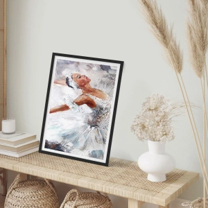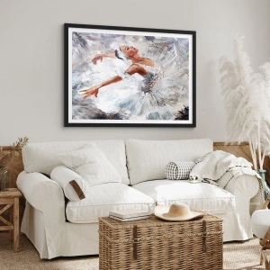 Poster in cornice nera - Una ballerina in abito bianco che balla - 70x50cm - Delicata e leggera come il tulle - Decorazione murale moderna per soggiorno e camera da letto ARTTOR
