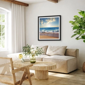 Poster in cornice nera - Una spiaggia con onde e un orizzonte soleggiato - 50x70cm - Insieme movimento e immobilità - Decorazione murale moderna per soggiorno e camera da letto ARTTOR