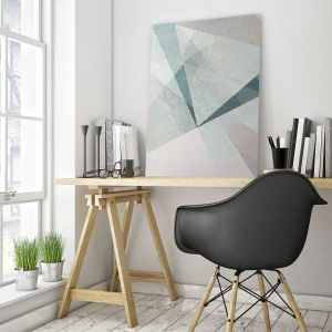 Quadro su vetro - Forme geometriche in tonalità pastello di verde e blu - 50x70cm - Con calma ma dinamicamente - Decorazione murale moderna per soggiorno e camera da letto ARTTOR