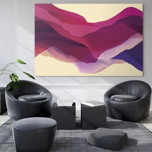Quadro su vetro - Onde astratte nei toni del viola e del rosa su uno sfondo chiaro - 50x70cm - Onde di porpora - Decorazione murale moderna per soggiorno e camera da letto ARTTOR