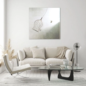 Quadro su vetro - Una gabbia aperta e un colibrì che vola via alla luce del giorno - 50x70cm - Nel proprio elemento - Decorazione murale moderna per soggiorno e camera da letto ARTTOR