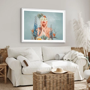 Poster in cornice bianca - Donna - fiore - 50x50 cm