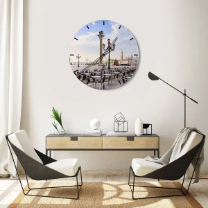 Orologio da parete - Orologio in Vetro - Venezia, veduta della piazza con colonne e tavolini dei caffè - 30x30cm - Venite a tavola - Decorazione murale moderna per soggiorno e camera da letto ARTTOR