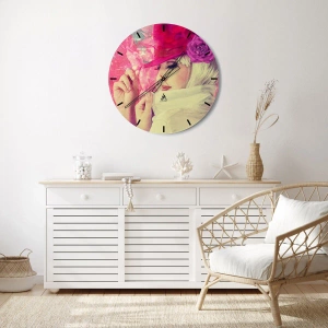 I colori dominanti, rosa e bianco, creano una composizione armoniosa che emana pace e fascino classico. Il motivo floreale sullo sfondo conferisce all'orologio ulteriore leggerezza e delicatezza, armonizzandosi perfettamente con l'atmosfera retrò. Questo orologio non è solo un dispositivo pratico, ma anche un accattivante elemento decorativo per interni.