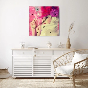 Orologio da parete - Orologio in Vetro - Ritratto stilizzato di una donna nei toni del rosa e del bianco - 30x30cm - Ritratto retro nei vapori di rosa - Decorazione murale moderna per soggiorno, cucina e camera da letto ARTTOR