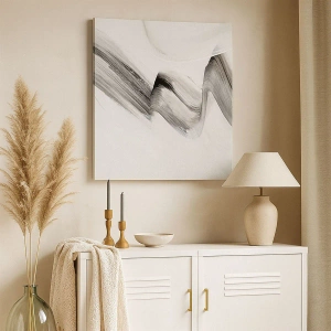 - Questa stampa su tela raffigura una pennellata astratta in bianco e nero su uno sfondo chiaro. Perfetta per interni minimalisti, aggiunge armonia e un tocco di stile.