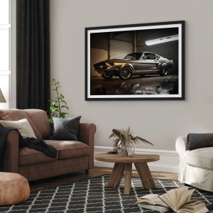 Poster in cornice nera - Auto d'epoca in garage retrò - 70x50cm - Ritorno al passato - Decorazione murale moderna per soggiorno e camera da letto ARTTOR