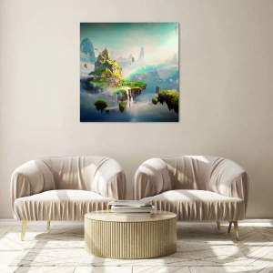 - Questo dipinto su vetro raffigura il magico mondo delle isole galleggianti, con cascate, arcobaleni e nuvole circostanti. È la decorazione perfetta per conferire un'atmosfera di fantasia e fascino fiabesco a qualsiasi interno.