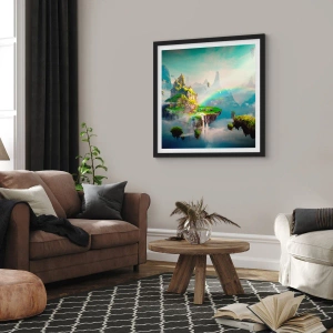 Poster in cornice nera - Isole volanti tra le nuvole con un arcobaleno all'orizzonte - 70x50cm - In mezzo al cielo: isole fortunate - Decorazione murale moderna per soggiorno e camera da letto ARTTOR