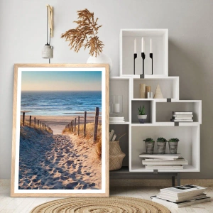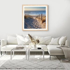 Poster in cornice rovere chiaro - Rumore del mare, uccelli che cantano, spiaggia selvatica tra i cespugli... - 50x50 cm