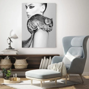 Quadro murale - Donna con cincillà - Ritratto di donna con cincillà in bianco e nero