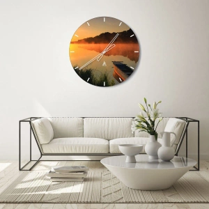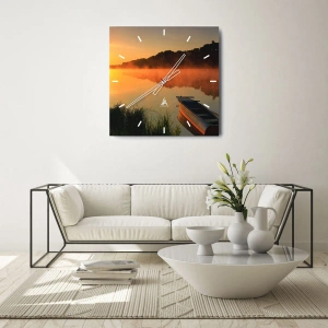Orologio da parete - Orologio in Vetro - Alba sull'acqua, come uno specchio - 40x40 cm