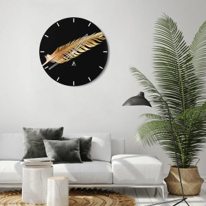 Orologio da parete - Orologio in Vetro - Piuma dorata su sfondo nero - 30x30cm - Non una piuma qualsiasi.... - Decorazione murale moderna per soggiorno e camera da letto ARTTOR