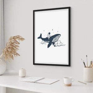 Poster in cornice nera - Astronauta su una balena che galleggia nello spazio - 70x50cm - Avventura nello spazio - Decorazione murale moderna per soggiorno e camera da letto ARTTOR