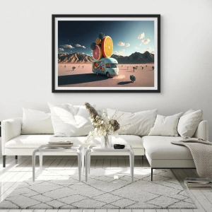 Poster in cornice nera - Camion della frutta in un paesaggio desertico - 70x50cm - Il sapore delle vacanze - Decorazione murale moderna per soggiorno e camera da letto ARTTOR