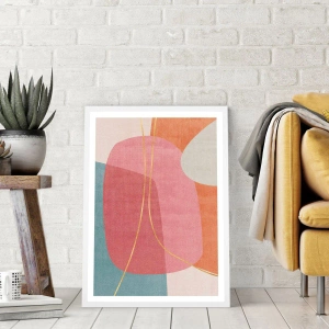 Poster in cornice bianca - Composizione pastello con filo dorato - 50x40 cm