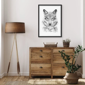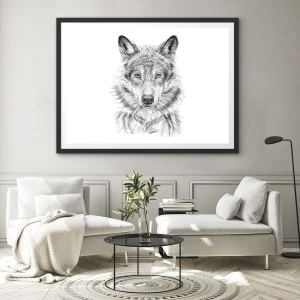 Poster in cornice nera - Disegno dettagliato di un lupo in stile bianco e nero - 50x70cm - Condottiero nato - Decorazione murale moderna per soggiorno e camera da letto ARTTOR