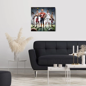 L'orologio da parete con motivo sportivo è un'ottima scelta per gli amanti dell'attività fisica e della competizione sportiva. La composizione dinamica che raffigura un gruppo di atleti sullo sfondo di uno stadio illuminato cattura lo spirito di squadra, la passione e la determinazione insiti in ogni sport. Questo orologio unico non solo misura il tempo, ma ispira anche l'azione e il raggiungimento di ulteriori successi.