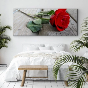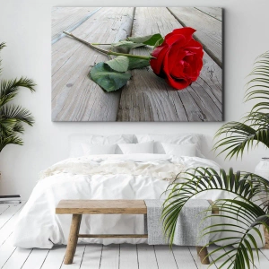 Quadro su tela - Stampe su Tela - Rosa rossa su uno sfondo di legno - 120x80cm - Studio in scarlatto - Decorazione murale moderna per soggiorno e camera da letto ARTTOR